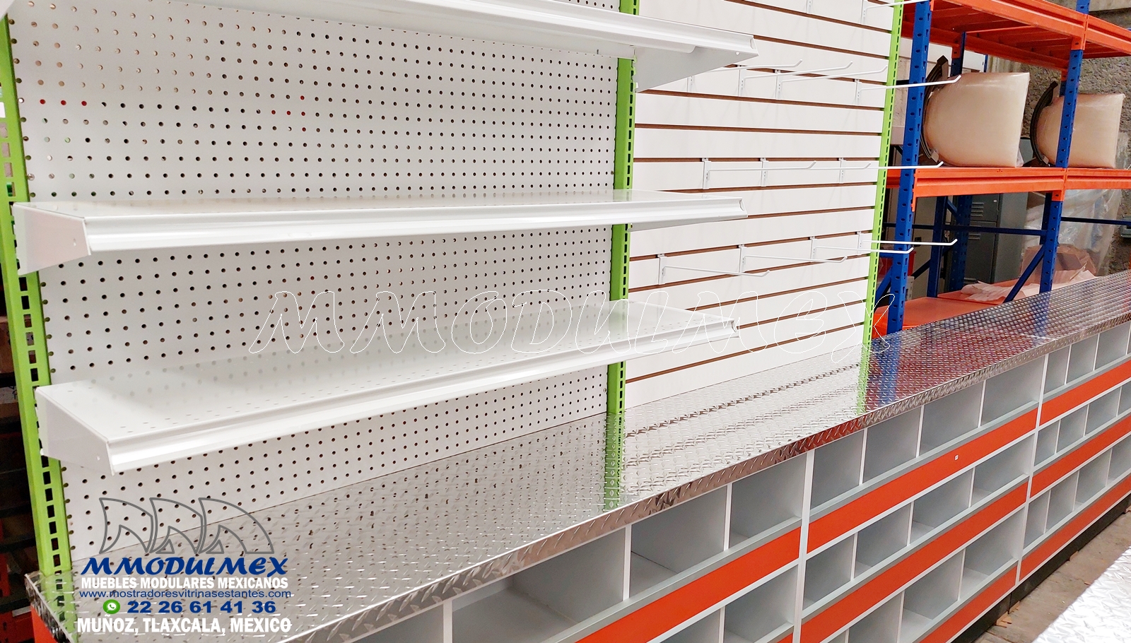 En Modulmex nos especializamos en la fabricación de muebles de tiendas, Muebles tipo Oxxo; fabricamos estantería metálica y estantes de madera; por muchos años hemos fabricado estantes de carga ligera o pesada y contamos con una buena cantidad de productos de línea, pero podemos desarrollar un mueble con características específicas o a la medida de sus necesidades.