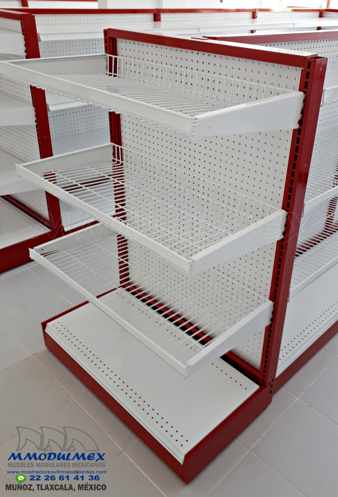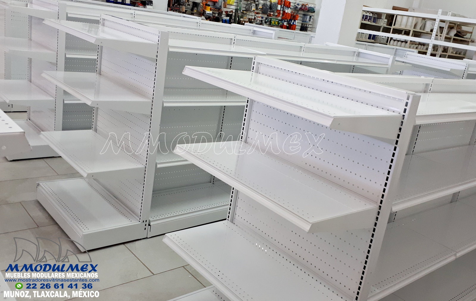 Las góndolas metálicas, centrales y de pared, son el principal elemento de almacenaje y exhibición de los productos para su negocio. Para exhibir la gran cantidad y diversidad de productos o marcas que existen en el mercado se requiere contar con góndolas adecuadas, resistentes y estéticas que no descuiden la presentación del negocio. Contamos con góndolas metálicas de muy diversos tamaños y con características especiales para poder exhibir cada uno de sus productos de tiendas o de herramientas y accesorios en caso de ferreterías, solo por mencionar dos giros de negocio. Tenemos distintos tipos de barras y accesorios para colocar y exhibir desde las herramientas más pequeñas o productos como tornillería y refacciones diminutas, hasta herramientas pesadas o maquinaria especializada que se venden en este tipo de negocios.