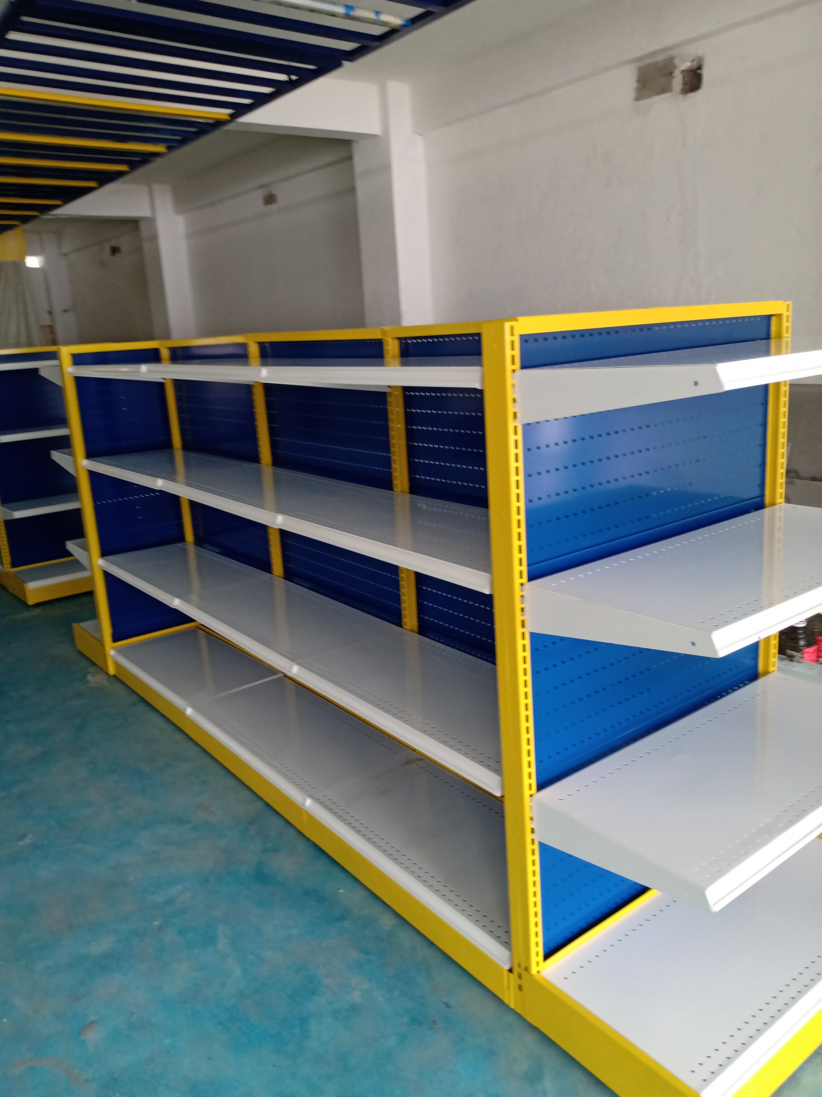 Fabricamos también Góndolas y racks metálicos de doble propósito... (exhibición y almacenaje), formada por góndolas metálicas centrales y racks de carga semipesada o de carga industrial que dependerá de la cantidad de producto se quiera almacenar en la parte superior... En las cabeceras se pueden colocar entrepaños directamente al marco del rack o puede colocarse la cabecera normal con entrepaños lisos o de alambre. La diferencia entre una u otra opción en las cabeceras, es la capacidad de carga del entrepaño....