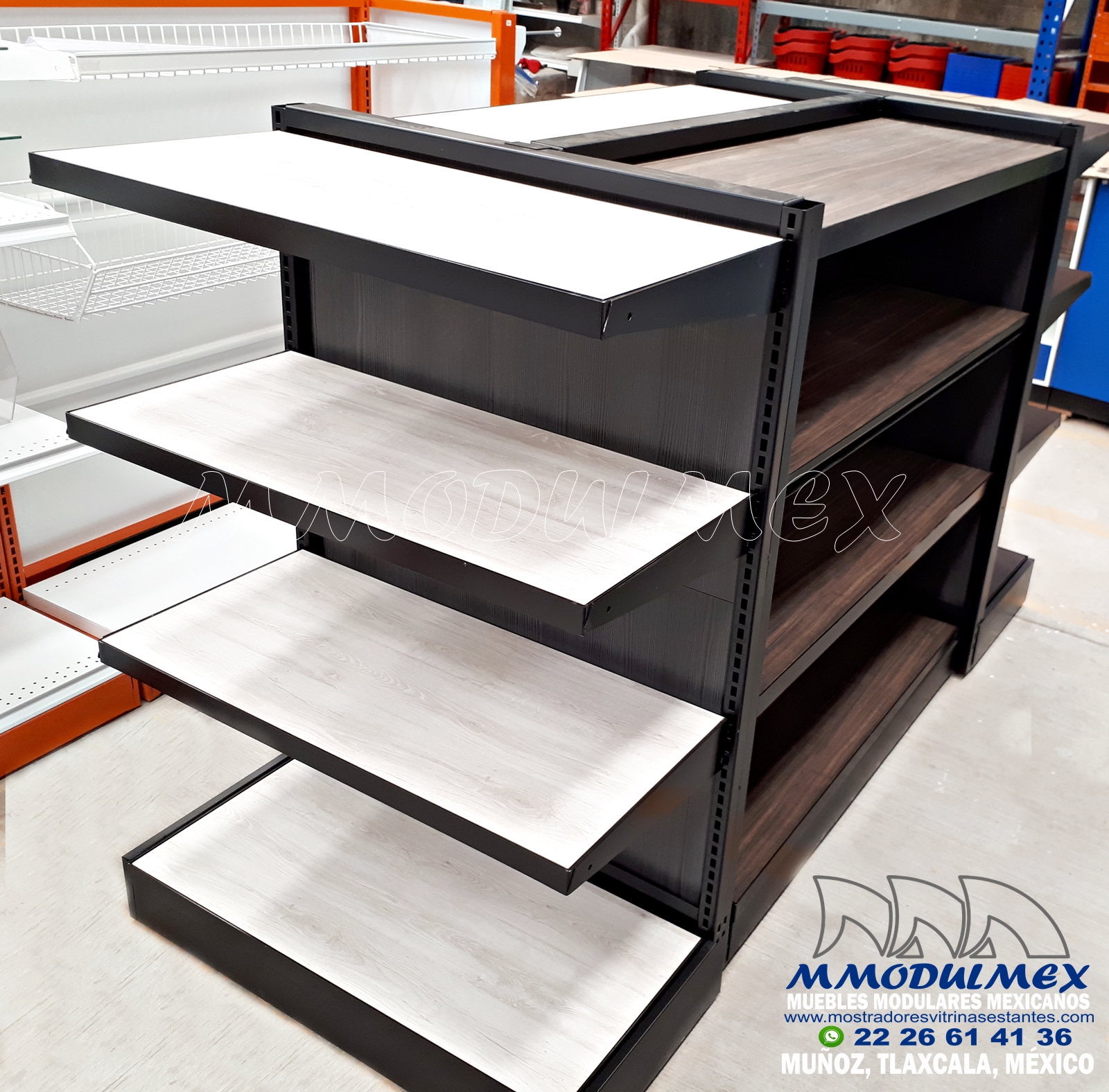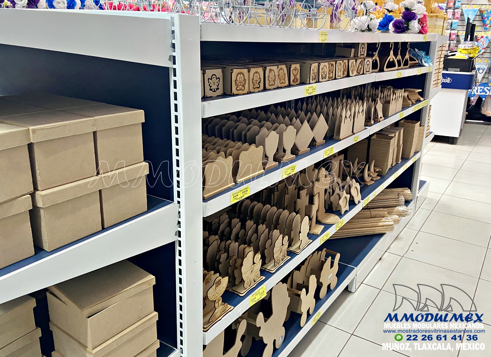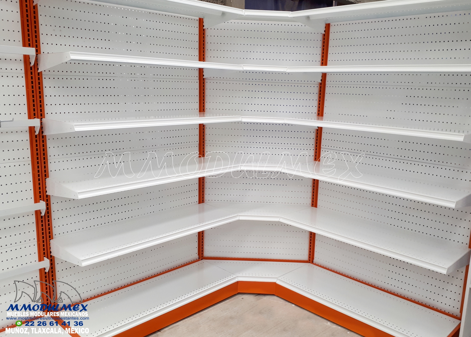 Con esas medidas se pueden hacer infinidad de configuraciones de medidas; pero también podemos fabricarlas a la medida que los clientes necesitan. En las divisiones o respaldos, también tenemos varias opciones para satisfacer las necesidades de exhibición de los clientes: Panel metálico liso; perforado metálico, perfocel de madera, panel ranurado o exhibipanel... todos ellos en las medidas y colores que el cliente solicita.